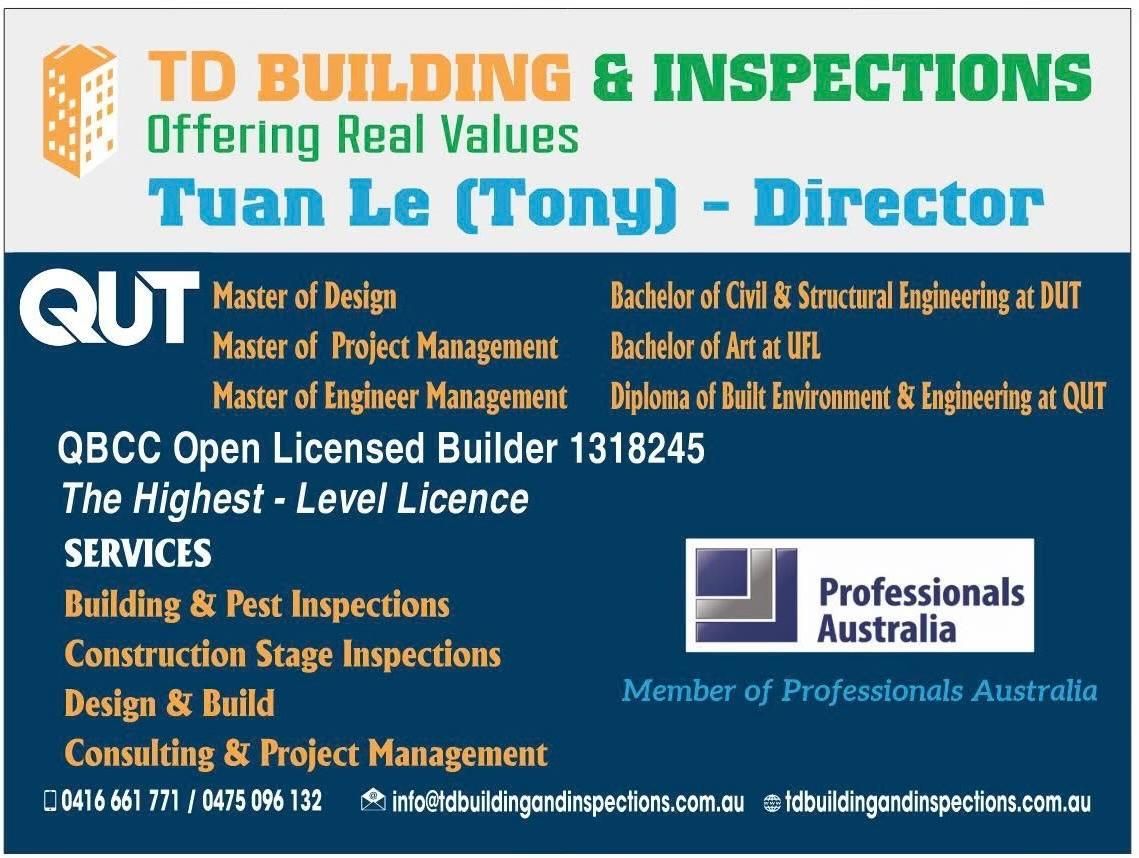 TD Building and Inspections offers comprehensive Building and Pest inspections, Stage inspections, Structural inspections and Design & Build in